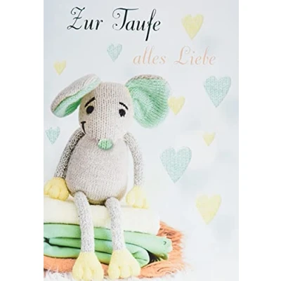Greeting card, greeting card, card. Baptism Includes envelope in: cream Christening Card Basic Classic Mouse 11.6 x 16.6 cm