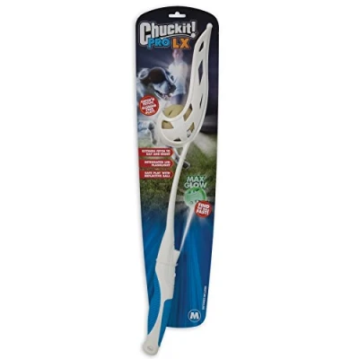 Chuckit Pro LX launcher is equipped with an LED flashlight to illuminate the path or find the ball quickly he ball delivered with the launcher is highly reflective, it is localisable up to 50 meters This thrower and this ball are used at dusk Unique size