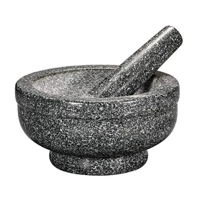 Mortar and Pestle made of solid Uncoated Granite for longevity Grind or crush whole spices and herbs; quick and easy; releases full flavor and essential oils Untreated inside features a coarse finish to facilitate grinding Tall walls won't let ingredients escape; pestles are heavy, yet comfortable to hold Measures 7" X 2. 75" X 5"; Wipe clean with damp cloth