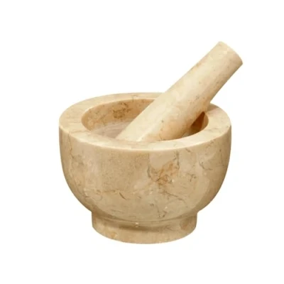 Ivory / Champagne Textured Marble with Pestle, Highly Polished, Diameter 13 cm, Height 8.5 cm, in Gift Box