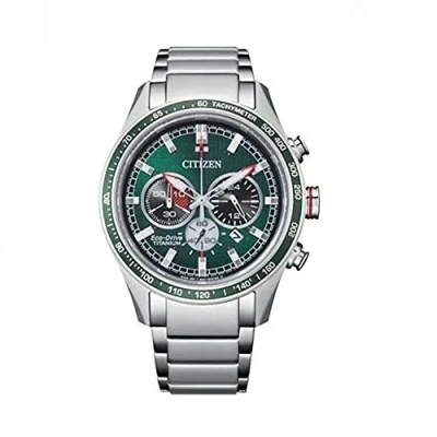 Men's analogue watch from the brand. Citizen Round green titanium dial with quartz movement With sapphire crystal Titanium strap in silver colour Water resistant to 10 bar