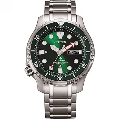 Men's analogue watch from the brand. Citizen Round green titanium dial with automatic movement With mineral glass Titanium strap in silver colour Water resistant to 20 bar