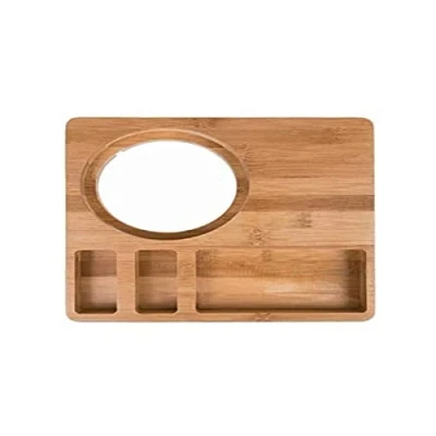 Space for Kettle to next - 140mm base diameter with cut out for cord 2 small compartments 80 wide x 35mm long plus one large compartment 80mm wide x 142mm long For use with CL111 and CD275 Kettle Material: Bamboo Package Weight: 2.94 kilograms
