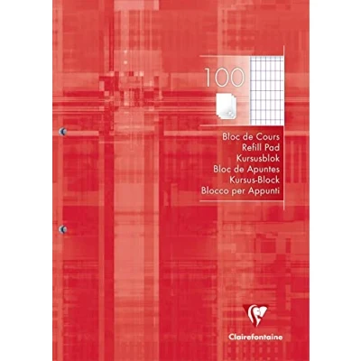 Clairefontaine Ref 5813C Punched Refill Glued Pad (Pack of 100 Sheets) A4 (210 x 297mm) in Size, 4/8 Squared Rulings, 90gsm Brushed Vellum Paper