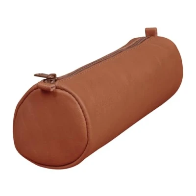 Clairefontaine Ref 77017C Age Bag Medium Leather Round Pencil Case 21 x 6cm, Genuine Lambskin Leather, Vegetable Tanned Dye, Metal Zipper Brown