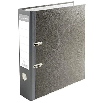 Pack of 10 folders made of laminated cardboard by Exacompta in DIN A4 format, 21 x 29.7 cm Contents: 10 pieces. Colour: grey Eyeleted finger hole and metal reinforced lower edge to prevent wear and tear Spine label. Practical and durable Inside laminated with grey marbled paper, back made of balacron with glued back label