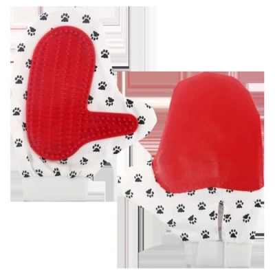 Cleaning glove for pets with rubber bristles, ergonomic design and easy washing; ideal brushing removing hairs at home.