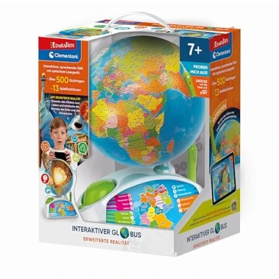Interactive globe: discover the treasures of the world and solve fun puzzles by pointing the optical pen at the globe and learning everything about the selected location Knowledge test: with over 500 questions in three difficulty levels, children can review their knowledge and challenge friends and parents Diverse Information Explore continents, nations, capitals, area, population, currency, language, territory, mountains, time zones, interesting facts, local products, national anthems, climate, history, and government Augmented Reality: The accompanying app allows you to play with augmented reality, bring landmarks, monuments and animated animals to life on the globe. The app is compatible with Android and Apple: the accompanying app allows you to play with augmented reality, bring landmarks, monuments and animated animals to life on the globe. The app is compatible with Android and Apple Box contents: the interactive globe includes an optical pen, detailed instructions and access to the accompanying app, which is compatible with Android and Apple -, Manufacturer: Clementoni