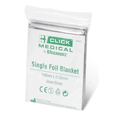 Cost effective insulation for accident victims Ideal for those in shock or for wrapping around casualties with hypothermia Radiant heat reflectance over 90% Unfolded size: 210 x 130cm Folds to a compact 10 x 6cm Cost effective insulation for accident victims Ideal for those in shock or for wrapping around casualties with hypothermia Radiant heat reflectance over 90% Unfolded size: 210 x 130cm