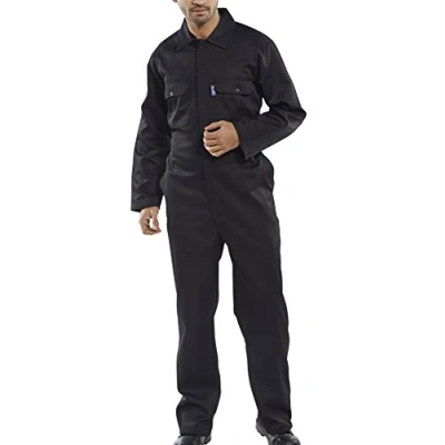 Poly Cotton Concealed stud front 2 breast pockets Elasticated waist 1 rear pocket