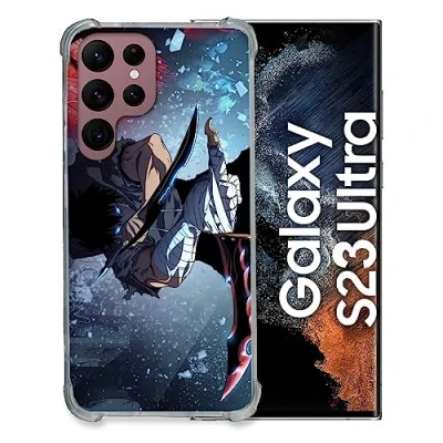 Cokitec Tempered Glass Case for Samsung Galaxy S23 Ultra Manga Solo Leveling Sung Sword