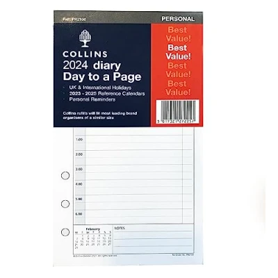 Collins 2024 Dayplanner Organiser Diary Refill Pad Personal Day a Page with Appointments Daily Planner
