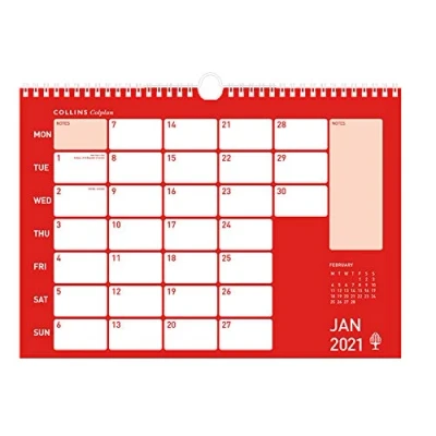 A4 Memo Calendar Month to a page wall calendar Writing space for each day plus extra space for notes Model number: CMCA4-21