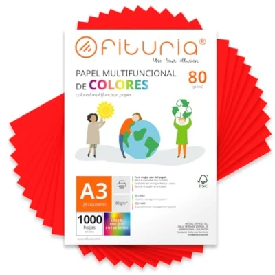 Variety of colours in DIN A4 80 GR: the paper packs include coloured sheets in DIN A4 (210 x 297 mm) and DIN A3 (297 x 420 mm), 80 g paper ideal as printer paper, for adult crafts, scrapbooking materials and card stock for children. COMPATIBLE WITH PRINTERS AND MULTIPURPOSE USES: Perfect as A4 and A3 printer paper and photocopier paper. Compatible with laser printers, inkjet and photocopiers. Great for school, office, crafts, origami for kids and adults, raffle ballots and decoration. IDEAL FOR CRAFTS AND SCRAPBOOKING: Coloured paper perfect for creative projects: origami, papyroflexy, paper roses, decorative paper crafts, or for posters and presentations. Bold and vibrant colored paper PERFECT FOR SCHOOLS, OFFICES AND EDUCATIONAL ACTIVITIES: Ideal in school settings for teaching activities, work sheets, and children's crafts. Also ideal for offices that need A4 80g sheets with colour to organize documents, internal signage or attractive presentations. IDEAL FOR ARTISTS, CRAFTERS AND DIY LOVERS: This colored paper is a favorite among creatives, craftsmen and Do It Yourself fans. Use it in scrapbooking, lettering, personalized invitations, handmade labels, origami paper, and colored cardstock for unique and original projects.