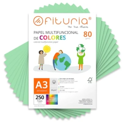 Variety of colours in DIN A4 80 GR: the paper packs include coloured sheets in DIN A4 (210 x 297 mm) and DIN A3 (297 x 420 mm), 80 g paper ideal as printer paper, for adult crafts, scrapbooking materials and card stock for children. COMPATIBLE WITH PRINTERS AND MULTIPURPOSE USES: Perfect as A4 and A3 printer paper and photocopier paper. Compatible with laser printers, inkjet and photocopiers. Great for school, office, crafts, origami for kids and adults, raffle ballots and decoration. IDEAL FOR CRAFTS AND SCRAPBOOKING: Coloured paper perfect for creative projects: origami, papyroflexy, paper roses, decorative paper crafts, or for posters and presentations. Bold and vibrant colored paper PERFECT FOR SCHOOLS, OFFICES AND EDUCATIONAL ACTIVITIES: Ideal in school settings for teaching activities, work sheets, and children's crafts. Also ideal for offices that need A4 80g sheets with colour to organize documents, internal signage or attractive presentations. IDEAL FOR ARTISTS, CRAFTERS AND DIY LOVERS: This colored paper is a favorite among creatives, craftsmen and Do It Yourself fans. Use it in scrapbooking, lettering, personalized invitations, handmade labels, origami paper, and colored cardstock for unique and original projects.