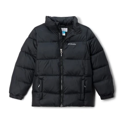 BOLD ADVENTURE: Boys' padded jacket with Thermarator insulation, chin guard, zip pockets and elastic cuffs, perfect for outdoor adventures in cold weather IDEAL FIT AND WARMTH: Regular fit, lightweight taffeta, zipper closure, long sleeves, neck style with chin guard, designed for warmth and comfort STYLE YOUR WAY - Pair it with jeans or joggers for days at the park, great to wear layered with comfortable tops in cold seasons DURABLE & EASY TO CARE: Thermarator insulation made from recycled polyester for light warmth, nylon taffeta exterior, machine washable on a gentle cold, tumble dry low, weatherproof design Contents: 1 x Columbia Puffect II Thermarator Insulated Jacket for Boys, Size: XL, Colour: Black
