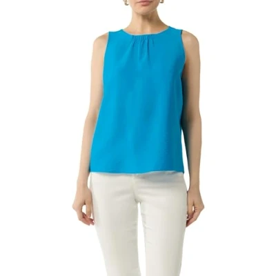 Fit: flared Crew neck Sleeveless Detail: Gathering Back: cut out and button at the neck