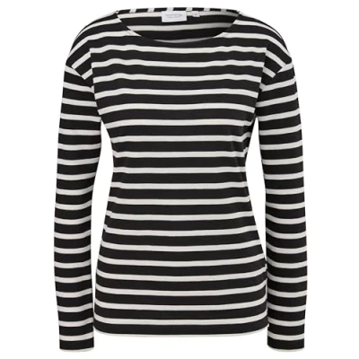 Crew neck Long sleeves Side slit hem Rubberised print detail at the neck and a flame yarn structure Made from high-quality and soft jersey made from modal mix