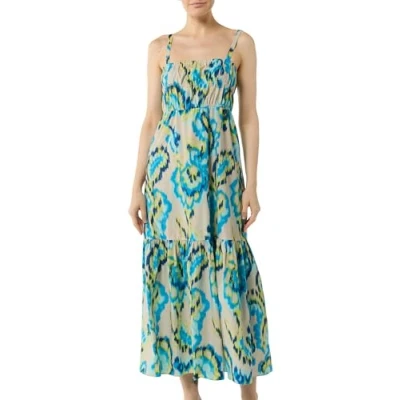 Fit: flared Spaghetti straps Square neckline All-over print Detail: ruffle, abstract pattern