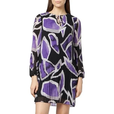 All-over print Long sleeves with elastic cuffs Chiffon with pleats The back length is 90 cm for size 36.