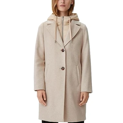 Notch lapels Removable, lined hood The quilted coat is padded, slightly warming and lined with taffeta. Shaped fit, the back length is 93 cm for size 36