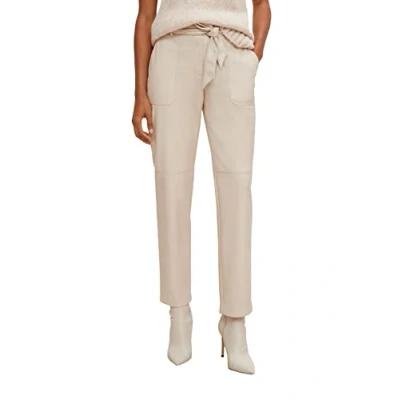 Has a medium-high waistband, has a tapered leg, has a regular Fit with hand pocket, has a hook closure, has a button closure, with zip in smooth quality, faux leather in leather look has a tie belt