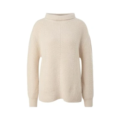 Relaxed fit The sleeves are long, sleeves with ribbed cuffs Made of knit, high-quality, soft, cotton mix With logo, has a knitted pattern Has a turtleneck