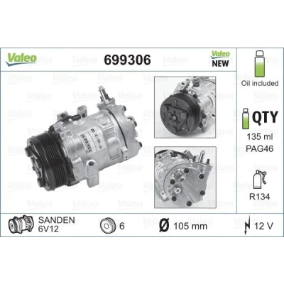 VALEO Compressor, air conditioning, model - 699306. Buy now for 206.80 EUR. Fast worldwide delivery within 3 to 5 business days. Compatible with: OPEL [ASTRA G Convertible, ASTRA G Coupe, ASTRA G Estate, ASTRA G Hatchback, ASTRA G Saloon, COMBO Box Body/MPV, COMBO Tour, CORSA C, CORSA C Hatchback Van, MERIVA A MPV, ZAFIRA A MPV]; VAUXHALL [ASTRA Mk IV, COMBO TOUR Mk II, MERIVA A].