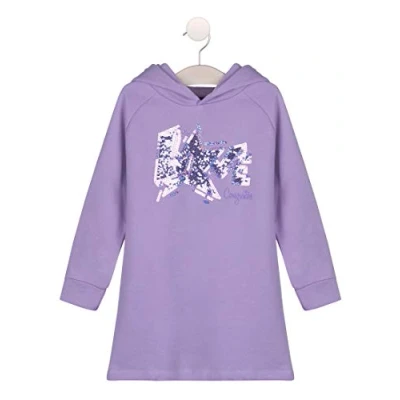 It has the big love word on the front and is embroidered with sequins Comfortable, warm and imaginative dress Sweatshirt style in mauve sleeves Made of comfortable and soft fabrics A cute dress for a casual and warm fall