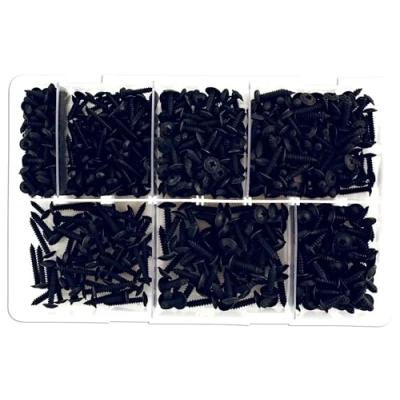 Common assortment of black Pozi lens head tapping screws Sizes from #6 to #10 thread DIN standard 7981/C Box Qty 700