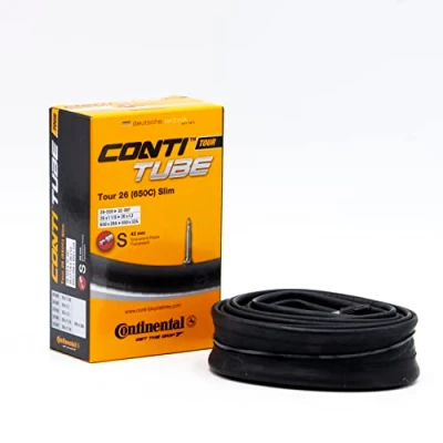 ContiTube Type: Tour 26 Slim Wheel Size: 26 Inch ETRTO-measurements: 28-559 > 32-597 Valve type and -length: Sclaverand/Presta 42 mm Material: Butyl