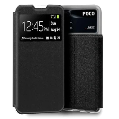 Cool Flip Cover Case for Xiaomi Poco M4 Pro Smooth Black