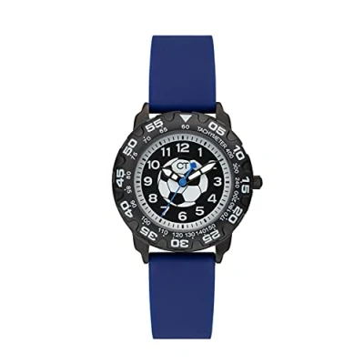 High-quality children's watch from Cool Time with football motif and Japanese quality movement Metal housing with rotating top ring, diameter 30 mm; case back, crown and clasp made of stainless steel; scratch-resistant mineral glass; water resistance tested up to 3 bar/ATM Comfortable, durable and washable silicone strap in dark blue; length 65 x 100 mm Child-friendly, easy-to-read learning dial Includes cool owl pencil case as packaging