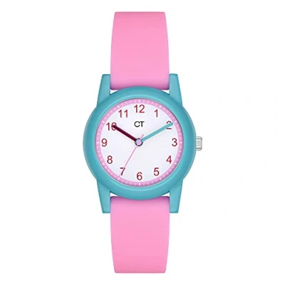 High-quality children's watch from Cool Time in trendy colour blocking design and Japanese quality movement Plastic housing diameter 30.5 mm; case back, crown and clasp made of stainless steel; mineral glass, 3 ATM Comfortable, durable and washable silicone strap in pink; length 75 x 115 mm Child-friendly, easy-to-read dial, thanks to clear numbers and minute divisions Includes cool owl pencil case as packaging