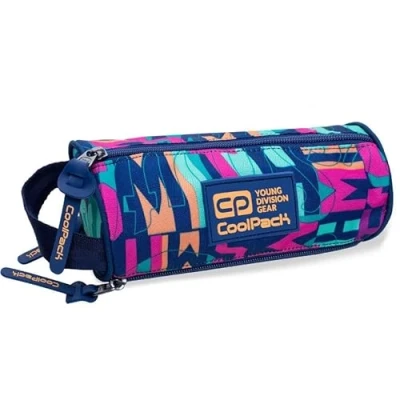 Coolpack Omni Three-Compartment Pencil Case fits all necessary office supplies and school accessories. Spacious, functional with a unique pattern. Spacious, functional with a unique pattern. Made of polyester (600D) for durability and protection against dirt. The tube-shaped case has three compartments closed with a sturdy zipper.