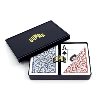 100% PVC plastic, these cards will last up to 500 times for outlasting paper cards Poker sized (6.3 x 8.9 cm) Completely washable, you don't have to worry about dirty cards. A quick wipe with a damp washcloth, then wipe dry and you're ready to go Includes durable and solid hard plastic storage case 1546 design, 2-decks, Manufacturer: Copag
