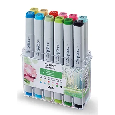 COPIC Classic Coloured Marker Pen Set of 12 Spring, for Art & Crafts, Colouring, Graphics, Highlighter, Design, Anime, Professional Beginners, Supplies Colouring Books