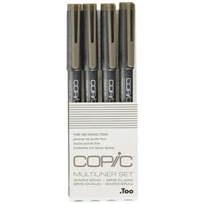Copic Multiliner Coloured Marker Pen warm grey Set 4 pcs., For Art & Crafts, Colouring, Graphics, Highlighter, Design, Anime, Professional Beginners, Supplies Colouring Books
