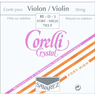Corelli Violin strings Crystal D Stabilon-Nylon/Silver wound Forte 703F NEW CRYSTAL: New STABILON fibre for the core, new computer-based technology and even more accurate automated checks during manufacturing have further enhanced the characteristics of the popular CRYSTAL range. Larger overtones, fast and more accurate response Quality sound projection from pianissimo to fortissimo
