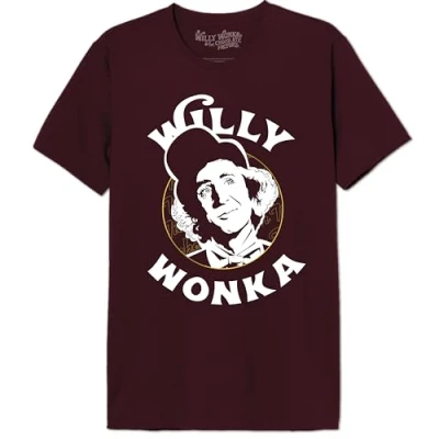 Willy Wonka "Willy Wonka Gold Ticket" MEWONKATS001 Men's T-Shirt, Burgundy, Size L 100% official licensed products Machine wash at 30°C inside out