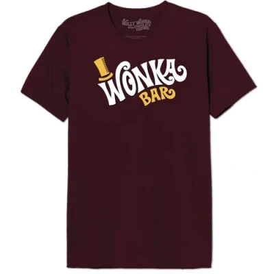 Willy Wonka "Wonka Bar" MEWONKATS004 Men's T-Shirt, Burgundy, Size S 100% official licensed products Machine wash at 30°C inside out