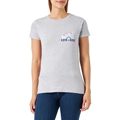 Looney Tunes "Tweety & Sylvester With Eggs" WOLOONETS095 Women's T-Shirt, Grey Melange, Size S 100% Official Licensed Product Machine wash at 30°C inside out