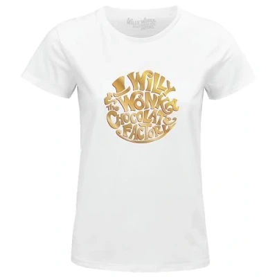 Willy Wonka "Circle Logo" WOWONKATS005 Women's T-Shirt, White, Size XL 100% official licensed products Machine wash at 30°C inside out
