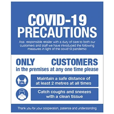 Safety sign to help display and advise of steps to take to mininmise the impact of coronavirus. Use as part of your workplace control measures during the COVID19 outbreak High quality print on glossy white, flexible vinyl with a strong, permanent, self-adhesive backing Suitable for application to most smooth, dry and clean surfaces Always thoroughly clean and dry the surface before application for best adhesion Simply peel off the protective backing, position and apply firmly to the surface