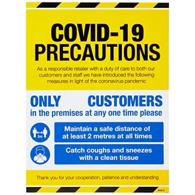 Safety sign to help display and advise of steps to take to mininmise the impact of coronavirus. Use as part of your workplace control measures during the COVID19 outbreak High quality print on glossy white, rigid PVC Waterproof - suitable for indoor and outdoor locations Lightweight with high impact strength, easily drilled for fixing Self-extinguishing material prevents the ignition of flames & flame spread