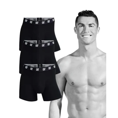 CR7 Cristiano Ronaldo Men's Cotton Boxer Shorts, Pack of 3, Black, 2XL