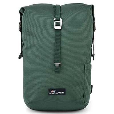 Pared-back courier-style backpack showcasing classic bucket-bag shape with classic roll top closure Includes a padded compartment for tablet (9”) and laptop (13”), padded shoulder straps and back panel, as well as sternum strap for balance. Reflective detail, gear loops and café strap. Cafe strap for attaching to items