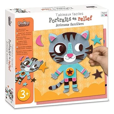 Category: Creation 3+ Box contents: to assemble and assemble pets through thick and self-adhesive foam parts. Children can recreate their favourite animals and then display their works on the beautiful easel. Development: dexterity, creativity and imagination Features: Package size: 24.5 x 24.5 x 4.5 cm. Includes 5 sheets of foam stickers and 5 cards Age: 3 years and up, Manufacturer: Crealign