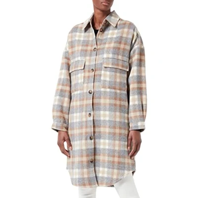 Trendy autumn jacket for transitinal season Long oversized t-shirt design with button, classic collar Long sleeves with button closure Wool Blend All-over print
