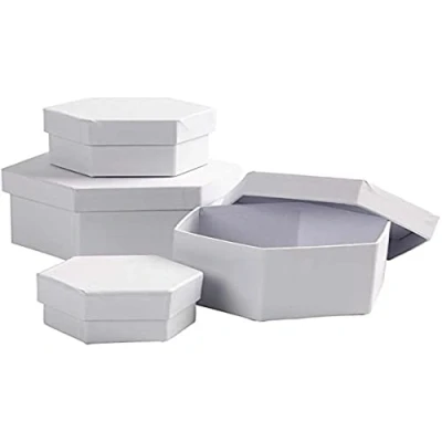 Creativ 100263 Hexagonal Boxes, D: 6,5+8+10+12 cm, 4 asstd White